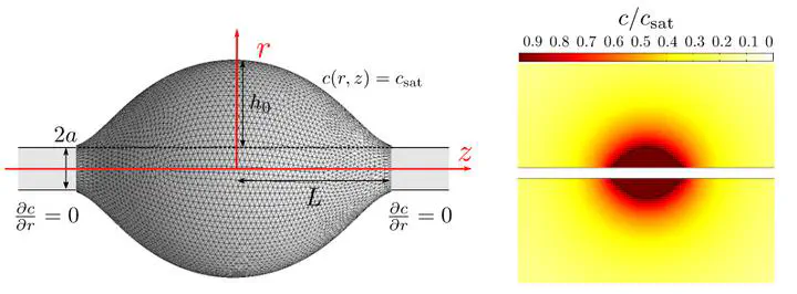 We investigate theoretically and numerically the diffusion-limited evaporation of aliquid deposited on a fiber in two configurations: a sleeve and a axisymmetric barrel-shapeddroplet. For a sleeve, the local flux depends on both the aspect ratio and the smallest length ofthe problem. By using analytical calculations and 3D finite elements simulations, we predict adivergence of this flux further localized at the edge as the aspect ratio increases. The evaporationof axisymmetric drops on a fiber is studied with numerical simulations. We evidence that theevaporation rate is almost independent of the wetting properties of the liquid, even for smallcontact angles, and that the droplets evaporate as spheres of the same volume.